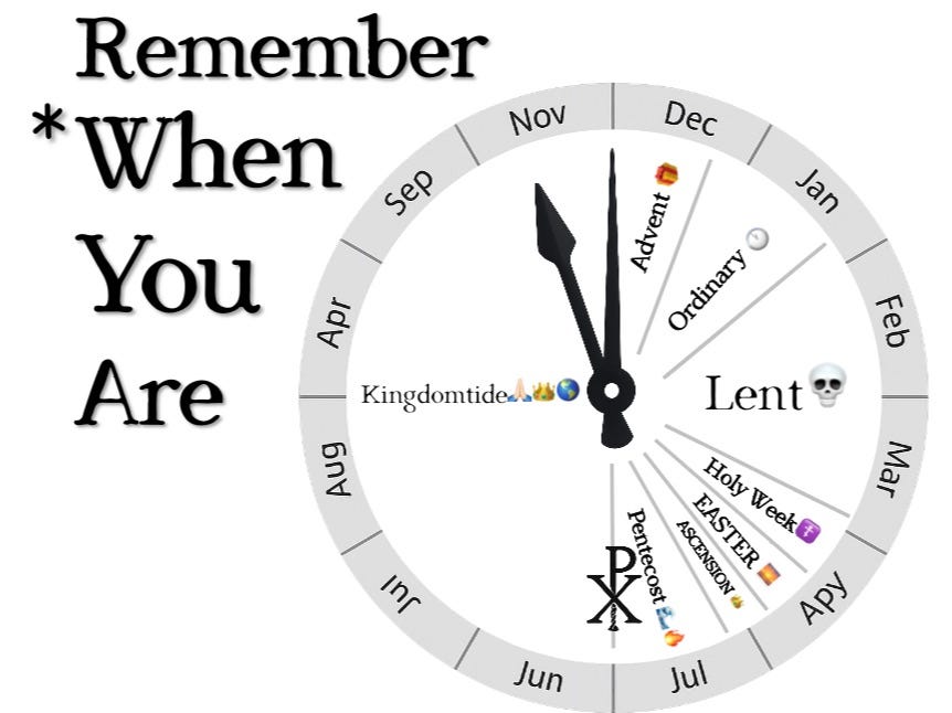 This all begins the fourth Sunday before Christmas and concludes on Christmas Day, which is the Church’s New Year’s Day. A few months after Christmas the Church enters the season of Lent, which culminates in the Passion Weekend (the Paschal Triduum), concluding on Easter Sunday. Forty days after Easter is the celebration of the ascension of Jesus to his throne in heaven. And finally, fifty days after Easter, the Christian festive year concludes with Pentecost, remembering the day the Holy Spirit flooded the earth and filled the Church.